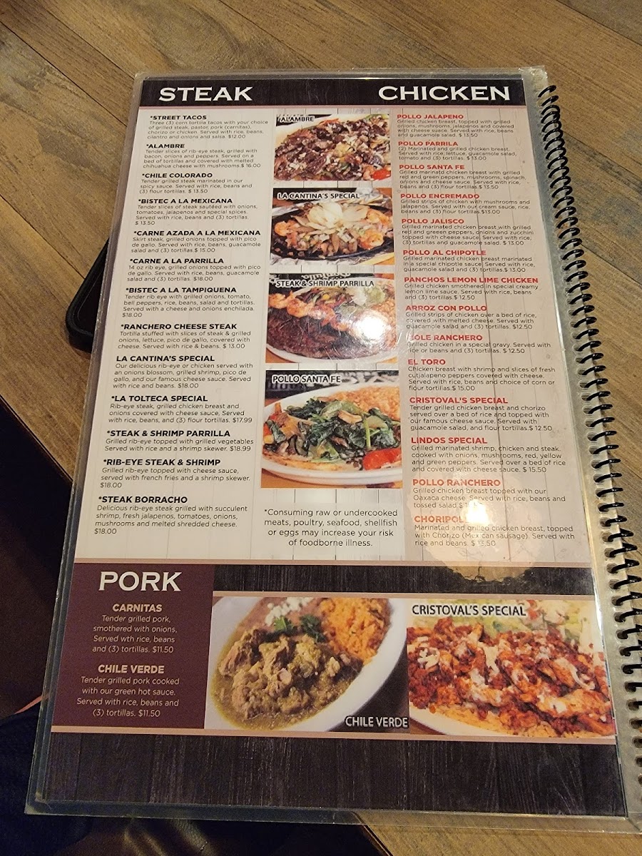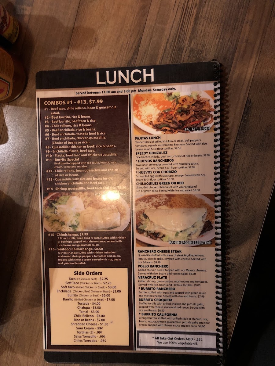 The menu showcases enticing options for everyone, including mouthwatering vegetarian combos such as the bean burrito and cheese enchilada, both priced at just $9.00. Carnivores will rejoice in the street tacos, filled with your choice of grilled steak, pastor, or chorizo for $10.50, ensuring a burst of flavor in every bite.